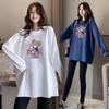Roupas de Primavera e Outono para Gestantes para Sair Moletom com Capuz Pulôver Comprimento Médio Novo Costurado Estilo Ocidental Solto Plus Size Camiseta Top