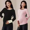 Nova Primavera e Outono Roupa Interior Térmica Leve para Mulheres Grávidas Gola Semi-alta Semi-elástica Roupas para Casa para Mulheres Grávidas Camisa Base de Desgaste Externo para Mulheres Grávidas