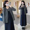 Moda Gestante Outono e Inverno Terno Fashionável 2025 Novo Vestido Moda Suéter Jaqueta Mãe Grávida Roupa de Alto Padrão