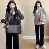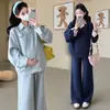 Conjunto Quente de Caxemira Seda Roupas para Amamentação para Gestantes Roupas de Outono Espessas com Forro de Lã e Calças Conjunto para Gestantes