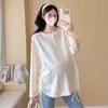 Em estoque maternidade roupa manga comprida primavera e outono estilo coreano solto mulheres grávidas roupas de outono comprimento médio plus size suéter fino top terno