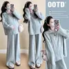 2025 Suéter de Moda com Zíper Macio e Amigo da Pele Outono e Inverno para Mulheres Grávidas Roupa Casual Moda Suéter para Mamãe Grávida Conjunto Solto