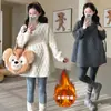 2025 Novo Inverno Estilo Coreano Emagrecedor Acolchoado Quente Moletom para Gestantes Comprimento Médio Fashionável Camisa Estilo Baby Doll para Maternidade