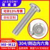 304 Aço Inoxidável Flat Round Head Hexagon Socket Screw Hexagon Socket Bolt Hexagonal Furniture Screws Atacado M6 / M8