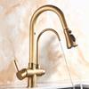 Cozinha antiga direto purificador de água potável torneira pia de saída dupla pia torneira pull-out fria e quente pode ser girado