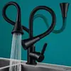 Torneira de cozinha retrátil de aço inoxidável preta, água quente e fria, misturadora de vegetais, pia, torneira telescópica universal