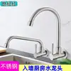 Torneira de parede de cozinha em aço inoxidável 304, resfriamento único, uso doméstico, entrada lateral de água, rotativa na parede, bico para fogão