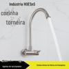 Torneira de esfera de aço inoxidável galvanizada, torneira única fria para cozinha, lavatório para louças, torneira giratória de 4 pontos para uso doméstico