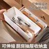 Caixa Retrátil Caixa de Armazenamento para Gaveta de Cozinha com Divisor de Hashis Embutido Talheres Grande Capacidade Organização de Miudezas Compartimento de Armazenamento