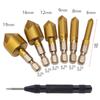 Chanfro de cinco lâminas banhado a titânio, conjunto de seis peças com seis cabos, 6 mm-19 mm, combinação de punção preta, abridor de furos para marcenaria