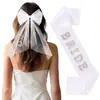 Moda Transfronteiriça Pente de Cabelo Bordado com Laço Nupcial Pérola Prata Alça de Ombro Despedida de Solteiro Terno de Renda Super Feérico