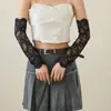 Luvas de malha femininas finas ocas sexy preto sexy acessórios rendas retro elegante dança desempenho proteção solar