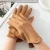 Luvas de couro femininas tela sensível ao toque outono e inverno veludo quente condução ciclismo estilo coreano mão reparação emagrecimento arco bonito estudante