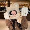 Urso bonito All-in-One chapéu quente pescoço lenço encapuzado mulheres de outono e inverno luvas de proteção de orelha chapéu moda pele pelúcia