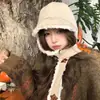 Gorro de Inverno Feminino para Exterior em Lã Corta-vento com Proteção de Pescoço e Proteção de Orelhas Chapéu Balde Versão Coreana Moda Chapéu Pequeno de Pelúcia