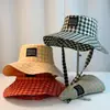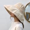 Chapéu de Pescador Xadrez com Cadarço Feminino Verão Japonês Retrô Aba Larga Proteção Solar Chapéu para Cabeça Grande Faz o Rosto Parecer Menor