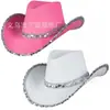 Chapéu de Cowboy com Faixa de Diamante e Glitter Prata Chapéu de Cowboy Ocidental Denim glitter rosa chapéu de cowboy Composto de EVA Preto Prata chapéu dourado rosa