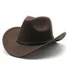 Chapéu de Feltro de Lã com Aba Lisa Estilo Punk Europeu e Americano Chapéu de Aba Larga Unissex Chapéu para Montaria Chapéu de Cowboy Ocidental com Aba Enrolada