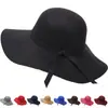 Novo estilo retrô britânico característico chapéu de lã longo chapéu casual feminino chapéu de aba grande chapéu de praia