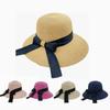 Chapéu de Palha Novo Estilo Coreano Chapéu de Sol de Verão Feminino com Laço Dobrável Chapéu de Sol Cor Sólida Chapéu de Aba Larga Chapéu de Praia