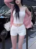 Shorts Casuais de Algodão Aéreo para Mulheres Primavera e Verão Novo Estilo Coreano Simples Emagrecimento Curto Calças Esportivas Cintura Alta