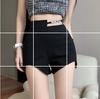 Shorts de Alfaiataria Pretos Sexy de Cintura Alta para Mulheres Verão 2025 Estilo Slim Hot Girl Calças Quentes Elásticas para Pessoas Baixas