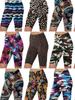 Calças de montaria estampadas de cinco pontos transfronteiriças, elásticas, justas, shorts de segurança para ioga, estampa de leopardo, leggings femininas plus size europeias e americanas