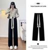2025 Primavera e Outono Novos Calças de Moletom com Cordão Femininas Soltas Versátil Casual Esportivo Pernas Retas Calças de Duas Pernas Pernas Largas