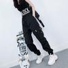 Calça Casual Longa Esportiva Versátil Preta Estilo Coreano Tendência High Street para Mulheres Primavera e Outono Fina Solta para Estudantes