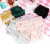 Luz de luxo de seda slide amoreira de seda da menina Traceless Underwear feminino puro desejo estilo amor malha cuecas de cintura baixa simples cor sólida
