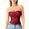 Modelador Corporal Sexy de Renda com Tiras Europeu e Americano para Mulheres, Afunilador com Efeito Push-up, Peça Íntima/Externa, Top Corset de Espinha de Peixe para Eventos