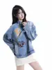 2025 Novo Casaco Jeans com Miçangas Europeias Hot Drilling para Mulheres Início de Outono Design Curto Top Jeans