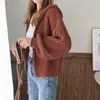 Foto Real de Cardigan Feminino Outono e Inverno, Estilo Curto Engrossado, Jaqueta Tricotada Feminina Estilosa com Capuz Pequeno