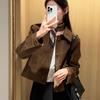 Chaqueta de Ante Marrón para Mujer, Estilo Corto, Primavera y Otoño 2025, Estilo Coreano, Chaqueta Informal Suelta Retro Ins para Mujeres Petite