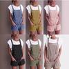 Estação independente popular da Amazon transfronteiriça, macacão feminino europeu e americano, cor sólida, solto, casual, de algodão e linho, suspensório transfronteiriço