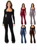 2024 Transfronteiriço Europa e América Amazon Comércio Exterior Feminino Manga Longa Barriga Cintura Alta Levanta Bumbum Decote Quadrado Perna Larga Macacão de Alta Elasticidade