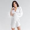 2026 Roupão de Cetim com Penas Branco Luxuoso Confortável Estilo Francês Manga Longa Moda Exclusivo Transfronteiriço Roupa de Casa para Mulheres Atacado