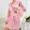 Moda Europeia e Americana Primavera/Verão 2026 Novo Cardigã de Cetim com Penas, Roupão de Banho, Loungewear Feminino, Macio e Amigo da Pele, Transfronteiriço