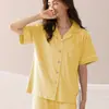 Pijama Amazon Europeu e Americano Verão Feminino Base de Cor Sólida Shorts de Manga Curta Casual Feminino Home Wear terno 2349