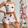 Pijama Feminino Transfronteiriço Roupa de Dormir Verão Conjunto de Quatro Peças Estilo Coreano Camisola com Bojos Fabricante Cetim Elástico Sensação Fresca