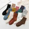 Meias Femininas de Algodão Cor Sólida Personalizadas Meia-Panturrilha Femininas Primavera Outono Inverno Multicor Punho Canelado Alta Elasticidade Anti-Queda Meias Zhuji Atacado