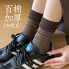 Meias Longas Espessas de Algodão Puro para Mulheres para Outono e Inverno, Meias Slouch de Cor Café Contrastante, Meias Slouch Sem Costura para Maternidade