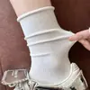 Meias de Algodão Brancas para Mulheres, Meias Respiráveis de Cano Médio com Punhos Enrolados, Meias de Algodão Aconchegantes com Fio Felpudo, Meias Pós-Parto, Meias Versáteis Femininas Zhuji