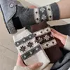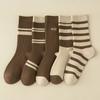 Meias femininas estilo coreano cor Maillard listradas modernas que combinam com tudo desodorantes cano alto para as quatro estações