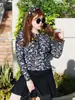 [Moda praia europeia e americana feminina] saia de manga comprida estampada com fenda calça quinta independente justa terno Amazon maiô