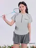 Maiô Duas Peças Plus Size para Mulheres, Top Manga Longa e Saia-Short, Adequado para Surfe, Mergulho, Esportes e Fontes Termais