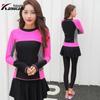 Pronto para Exportação Fábrica Roupa de Banho Feminina Conservadora Conjunto de Três Peças com Saia de Cor Contrastante Estilo Maiô de Manga Longa para Proteção Solar para Fontes Termais