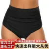 Calções de banho europeus e americanos por atacado transfronteiriços para mulheres Amazon calções de banho plissados elásticos altos para mulheres calções de banho triangulares de cintura alta conservadores para mulheres