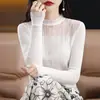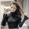 Em estoque Camisa de malha Nova suéter feminino com gola alta e babados Camisa básica feminina Top manga trompete Slim 2024