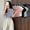 Camisa Polo Casual Justa de Manga Curta, Tricô Curto, Top Camiseta com Gola para Mulheres, Tendência Estilo Coreano Verão 2023